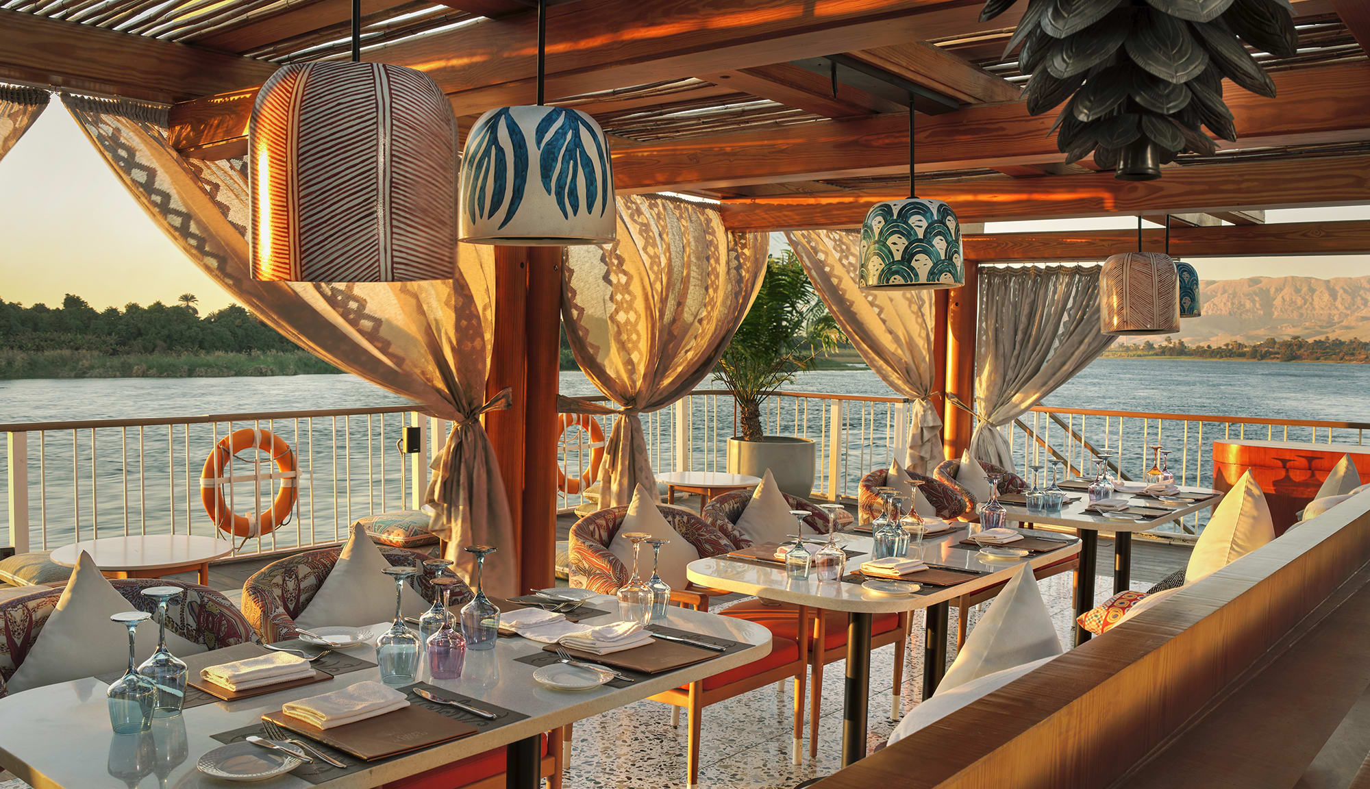 This luxury river cruise ship provides a refined onboard experience with exquisite dining, a sun-deck pool, a fitness center, and enriching cultural entertainment. Guests can explore ancient wonders like the temples of Luxor and Karnak, the Valley of the Kings, and Aswan’s historic sites.
