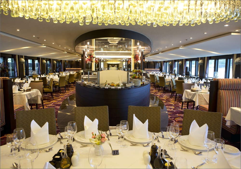 She sails various destinations in Europe, including the mighty Danube, the romantic Rhine, Seine, and the breathtaking Moselle; offers an opportunity to experience the sights and sounds of historic ports and towns along the riverbanks, with free guided shore excursions.