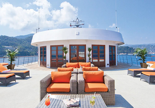 Comprising 57 exceptionally spacious, well-designed suites with ocean views arranged over four decks, all suites feature a sitting room area and just under half have private balconies.