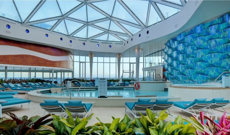 Celebrity Edge® Series AquaClass® guests enjoy complimentary access to the SEA Thermal Suite, which has eight distinct spaces that all incorporate different elements of the SEA experience. Guests of Millennium® and Solstice® Series enjoy complimentary access to the Persian Garden which includes rejuvenating experiences, including aromatic steams and tropical rain showers.