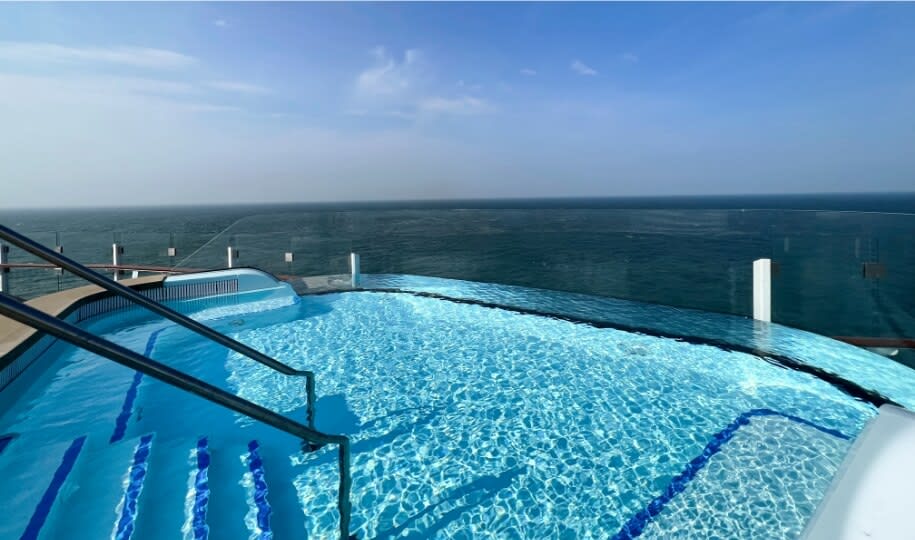 Edge AquaClass guests enjoy a state-of-the-art infinite veranda, king-size cashmere mattress bedding, soothing stateroom touches and complimentary fitness classes. Plus, unlimited access to the SEA Thermal Suite, complimentary dining at Blu restaurant, and a personal spa concierge.