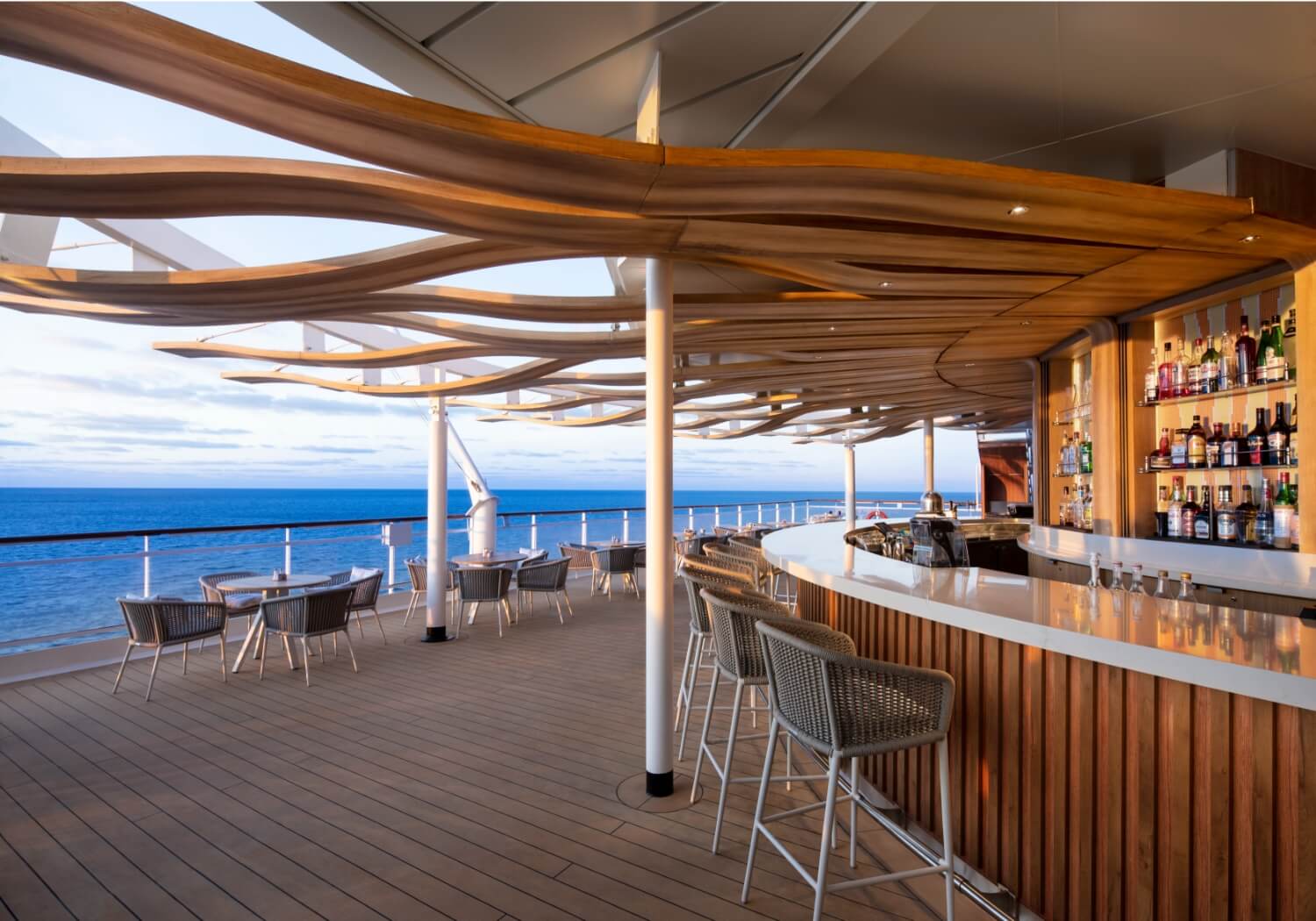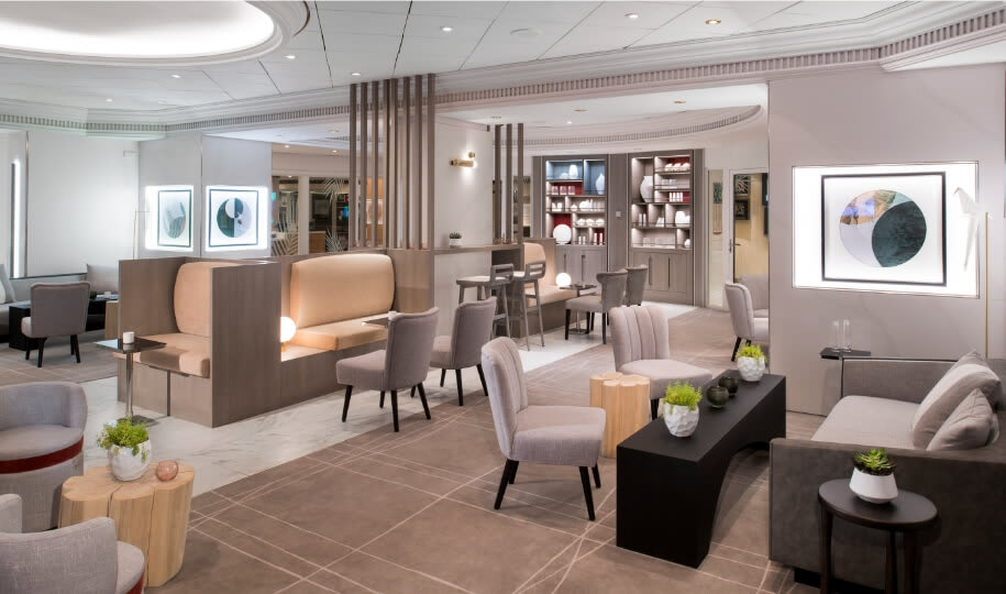 As a guest of The Retreat, you’ll also enjoy a long list of thoughtfully curated amenities that start with five newly added perks*—a spa credit, premium drinks, streaming Wi-Fi, tips, and an onboard credit to spend almost any way you like.