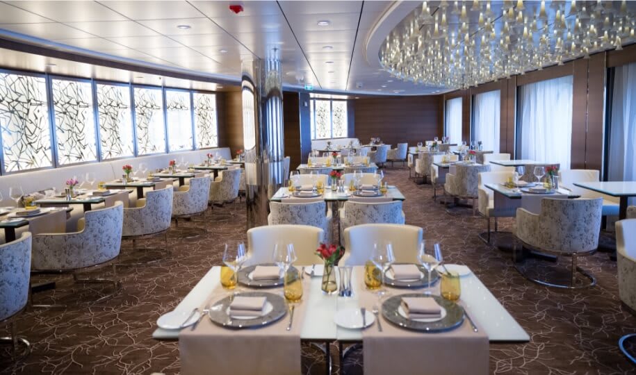 The ship has 1,079 cabins, with 80% having picture windows or private verandas. In short, if sweeping views of the ocean are something that you would like to be able to appreciate from your luxury-cruise stateroom, you should find it relatively easy to pick out the perfectly suited accommodation for your preferences and needs.