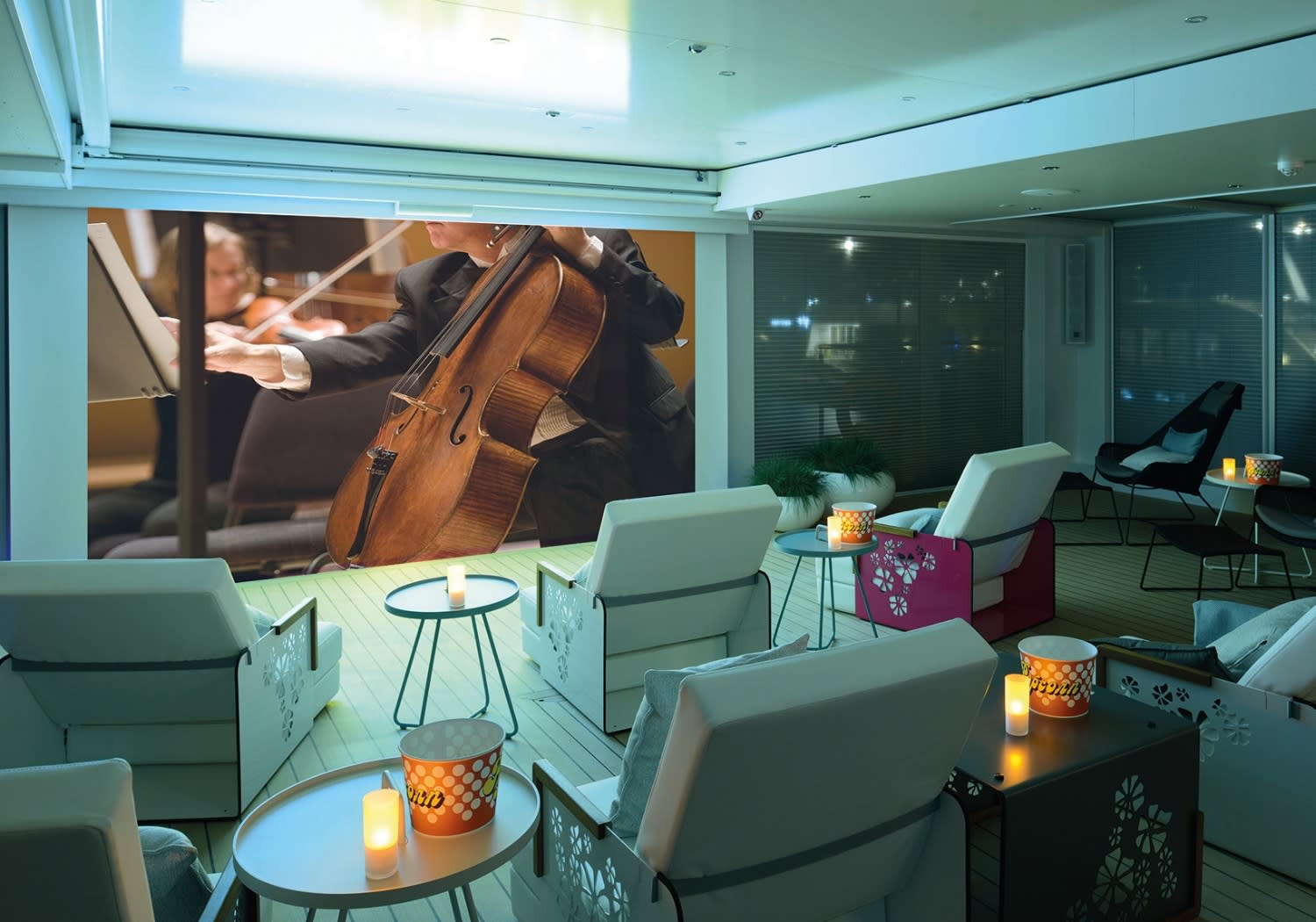 During your journey, you can enjoy a range of night-time entertainment such as live music or cinema screenings – or simply relax with your favourite beverage and watch the sunset with your favourite drink at hand.