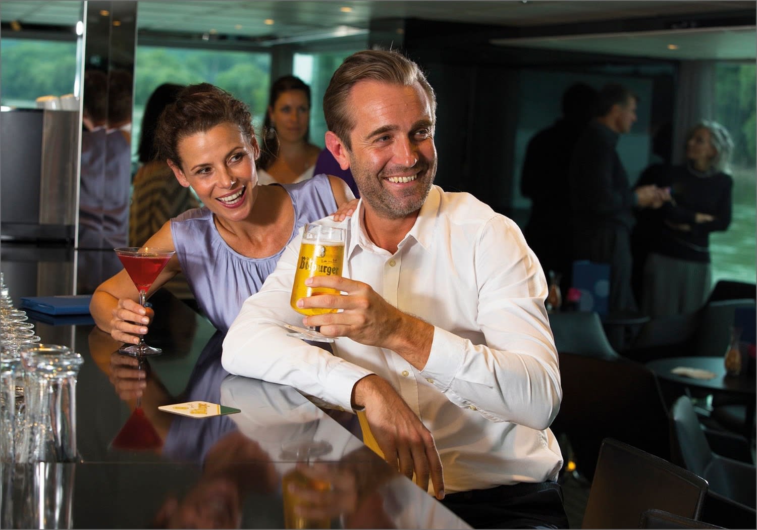Your luxurious bathroom features a shower complete with decadent toiletries, as well as comfortable bathrobes and slippers, the perfect attire for getting ready for an evening meal. And, the suite comes with an exclusive invite to dine at the Captain’s Table for an evening sure to become a highlight of your river cruise. Take advantage of having four laundered items a day and prepare that special suit or gown for a night such as this or for an occasion you may be celebrating. You can even have pre-dinner canapés delivered to your door and after-dinner sweet treats to enjoy with a drink from your complimentary minibar.