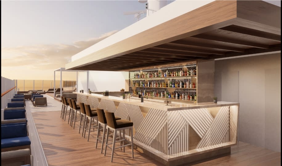 The 18 food and beverage venues will include five all-inclusive, vibrant restaurants and one additional paid venue. Delight in live cooking stations in the Emporium Marketplace, enjoy the laidback vibes of the Med Yacht Club, feast on delicious steaks at the Marble & Co. Grill steakhouse, dine on international dishes at French-influenced Fil Rouge and explore Pan-Asian cuisine at Sakura.