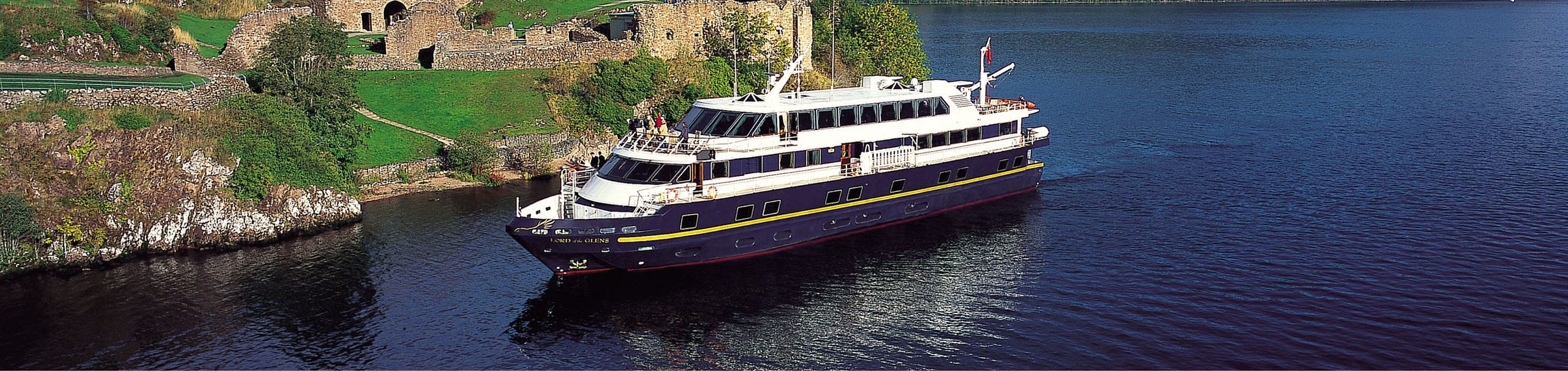 Lord of the Glens is a luxury boutique cruise ship specifically designed for cruising through the Scottish Highlands and the Caledonian Canal, offering an intimate and comfortable experience.