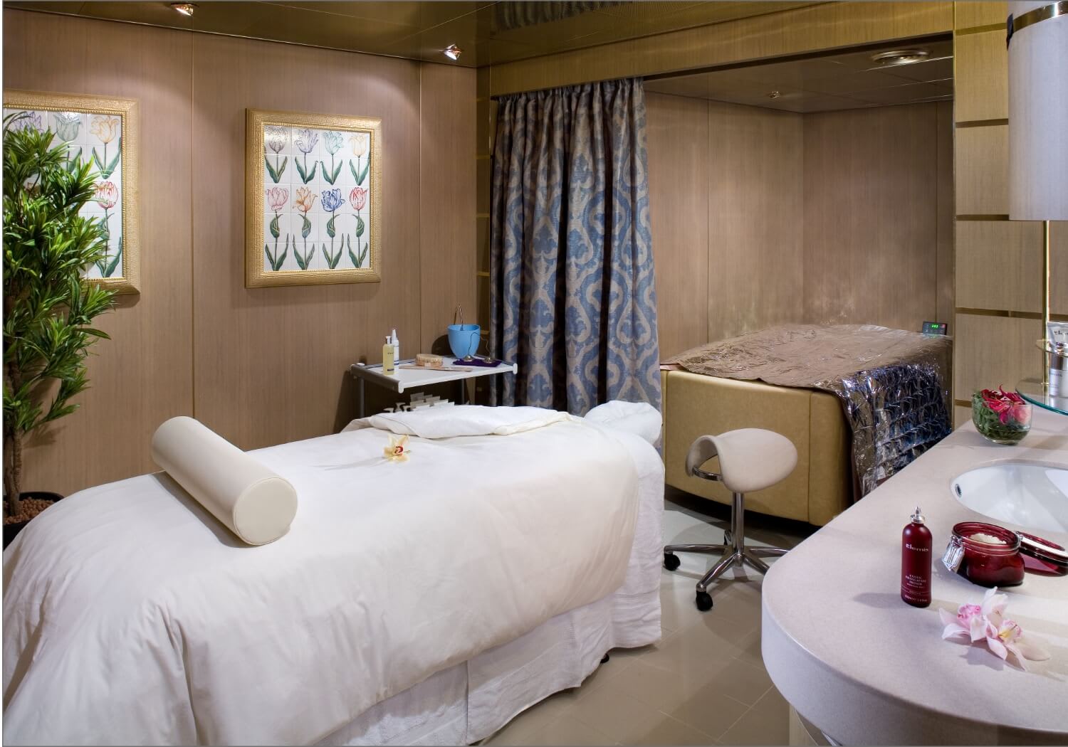These staterooms feature spa amenities such as yoga mats and access to spa treatments from the Greenhouse Spa & Salon. There are two lower beds convertible to one queen-size bed—our Signature Mariner’s Dream™ bed with plush Euro-Top mattresses, premium massage shower heads and a host of amenities are featured in these comfortable staterooms.