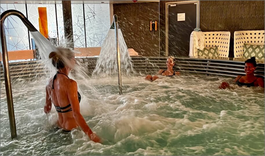 For those seeking relaxation, there is also an onboard spa where guests can indulge in a massage or facial treatment.