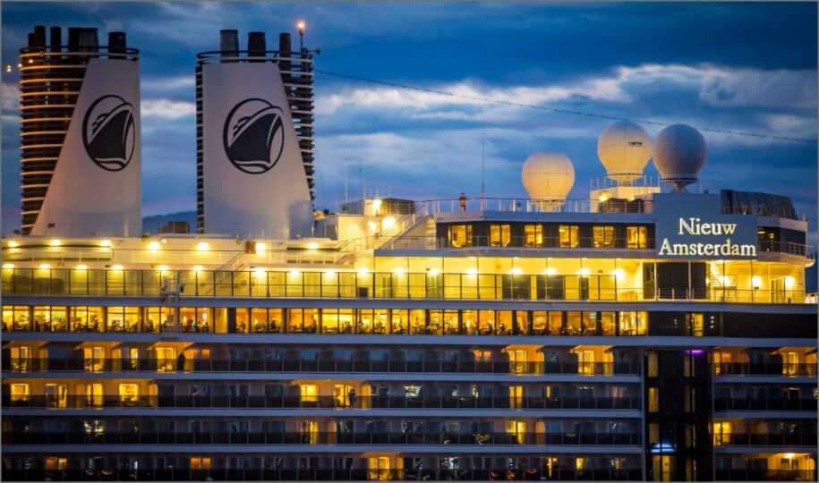 Holland America Line’s Nieuw Amsterdam is a mid-sized cruise ship offering the best in luxury accommodation and amenities.