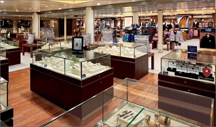Yes! The ship has a large selection of shops and boutiques where passengers can find the perfect souvenirs or treat themselves to some new clothes. Shops include fine jewellery, fashion apparel and accessories as well as duty-free liquor stores.