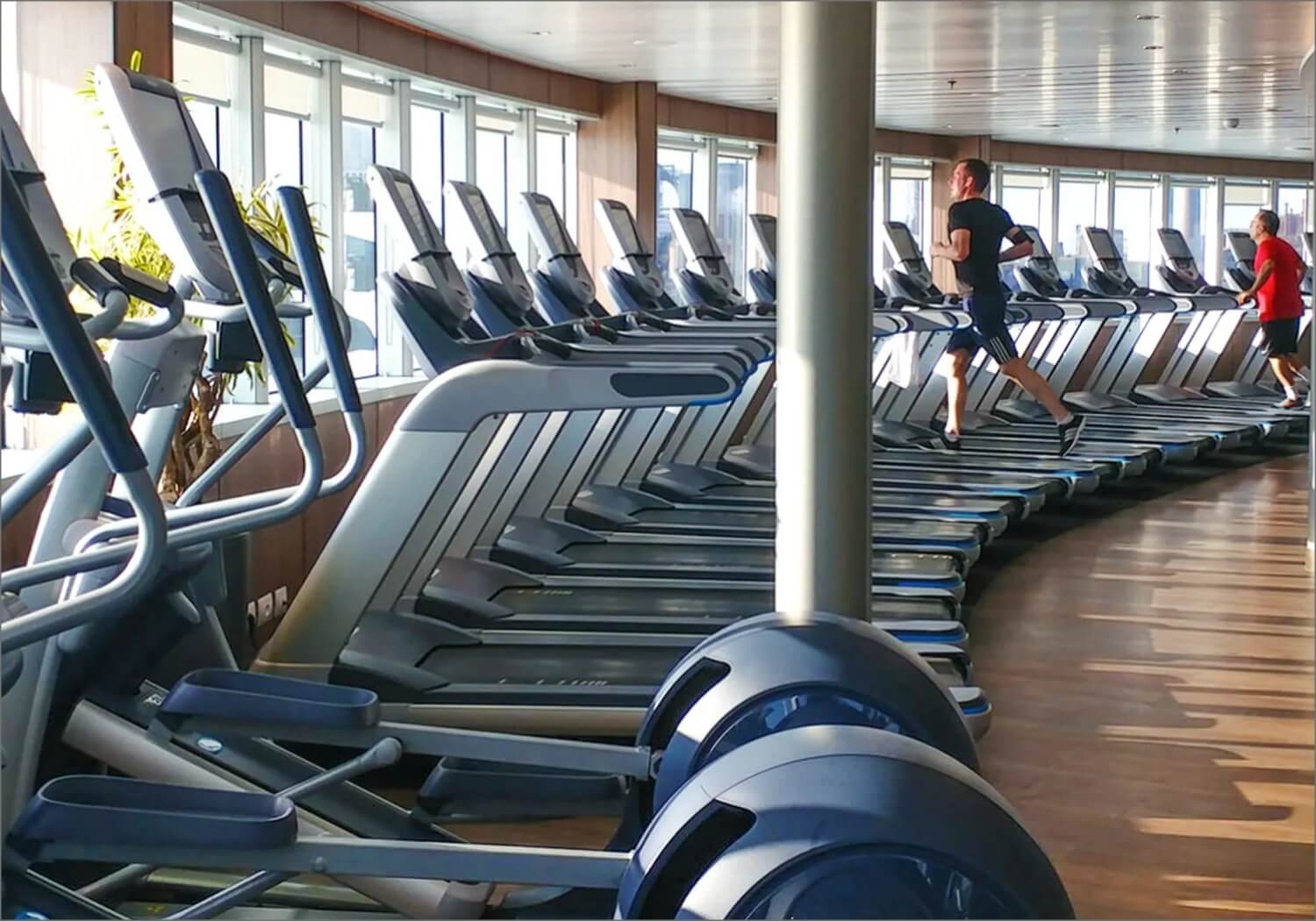 Yes, there is a fitness centre on board equipped with treadmills, weights, and other exercise machines. Fitness classes like yoga and Pilates are also held daily on board in areas like the Sky Deck area or Spa Room.