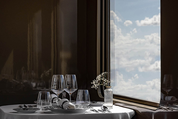 Step into an opulent realm of elegance and allure on board the all-new La Dolce Vita Orient Express, debuting in 2025. La Dolce Vita Orient Express captures the essence of 1950s and 1960s Italian glamour with its sleek, retro-inspired design. Adorned with curved mirrors, shimmering metallic and lacquered finishes and bold geometric prints, this elegant vessel pays homage to classic Italian style.