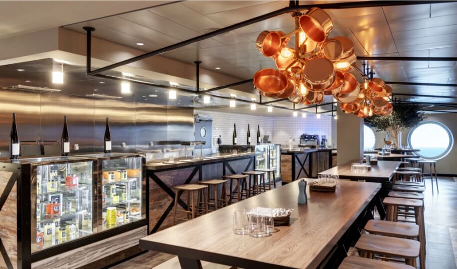 Private Lounge, swimming pool and gourmet restaurantThe image is representative only; the size, layout and furniture may vary (within the same cabin category).