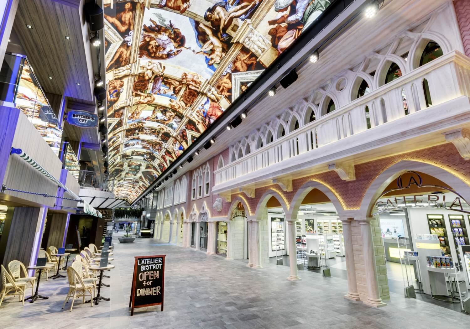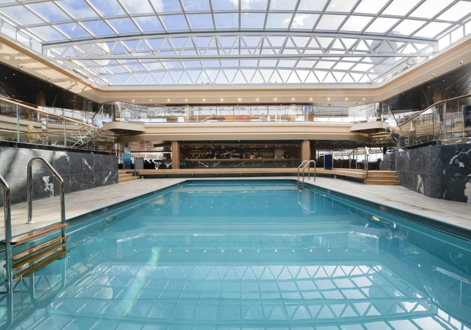 Witness breathtaking views of the clear blue ocean on board MSC Grandiosa, and make sure to explore the panoramic interiors when you have the chance. From her indoor promenade that is covered by an LED dome, right through to the atmospheric pools, awe–inspiring views can be found both inside and outside of MSC Grandiosa.