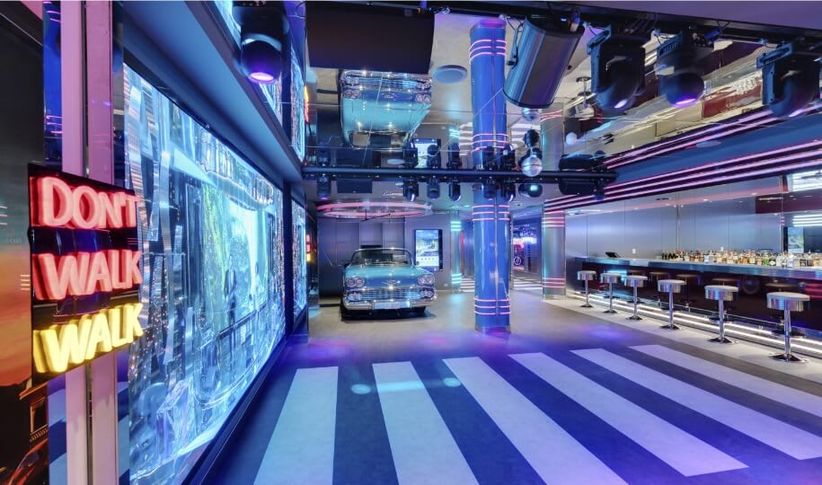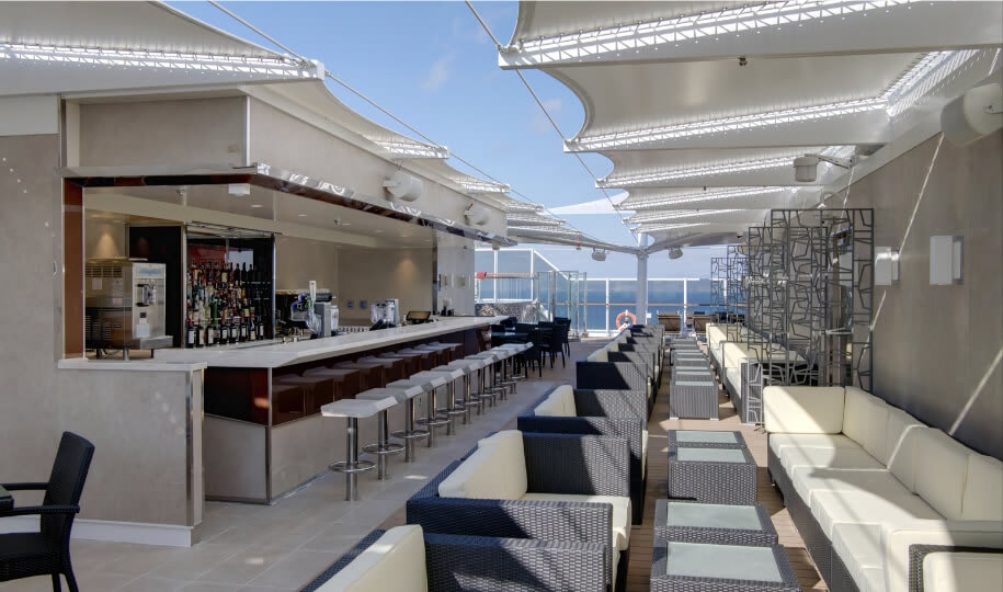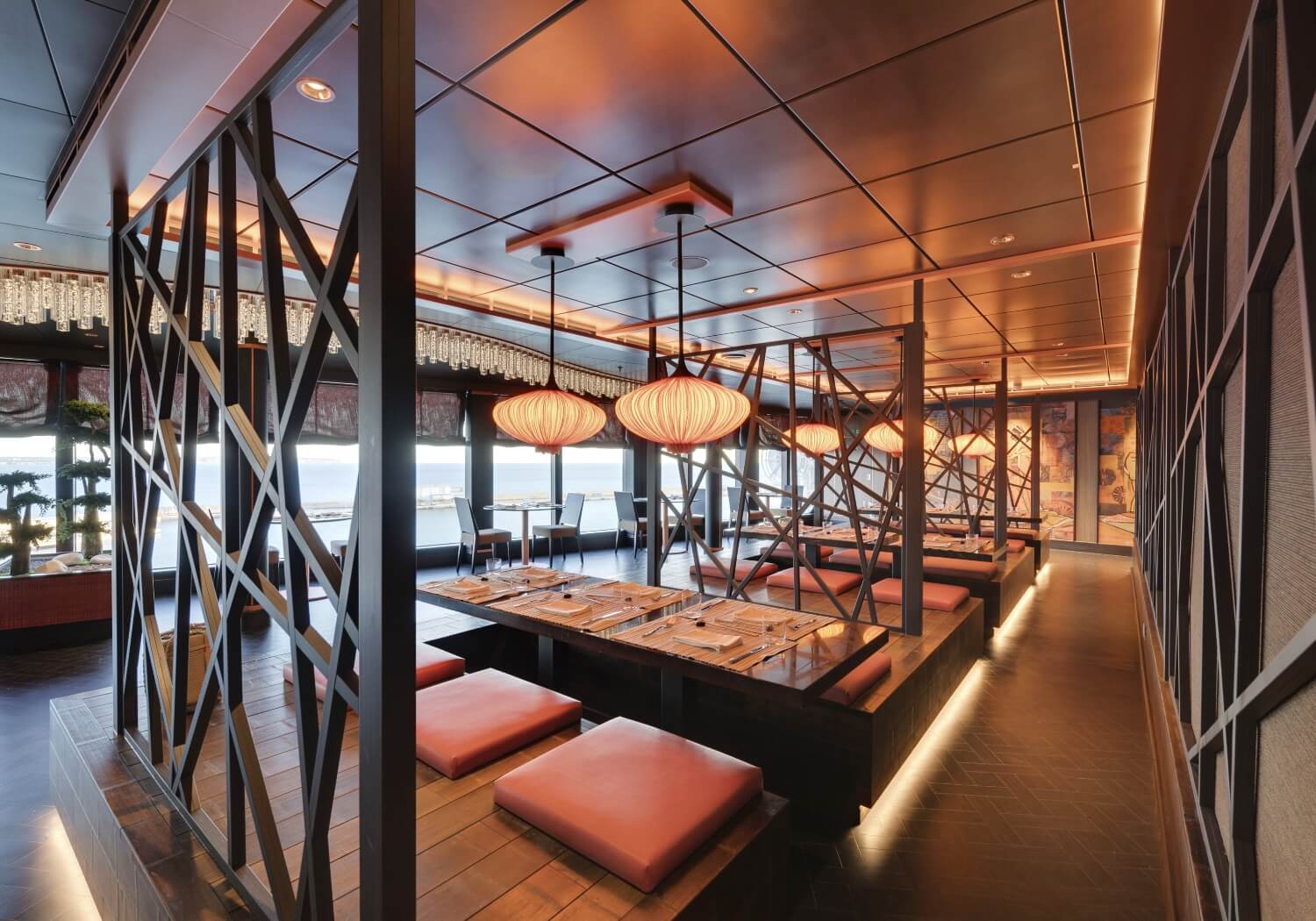 On the Deck 8 promenade, you will find an impressive complement of restaurants and bars, each offering a unique atmosphere and food and drink from around the world.