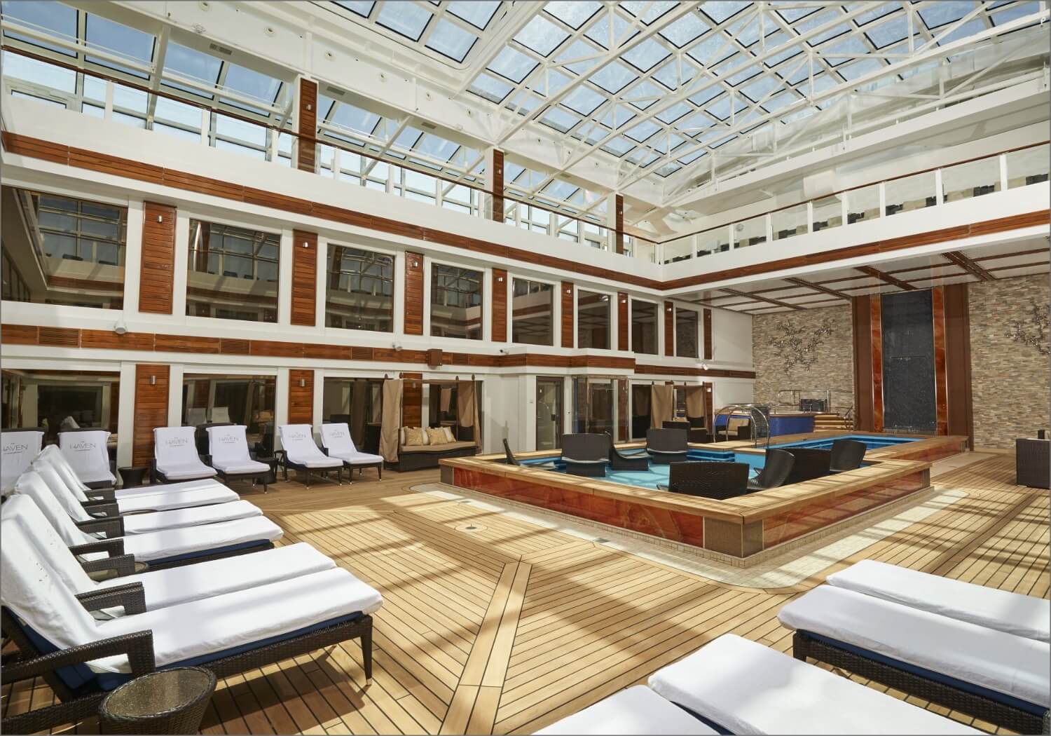 With access to The Haven, these Penthouses feature a king-size bed, plus a sitting area. They are located mid-ship so you are close to all the action.