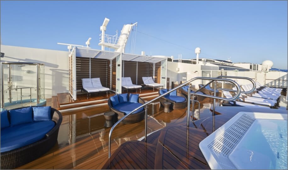With access to the Haven, these Penthouses feature a king-size bed and a double sofa bed, two bathrooms and incredible views from the large, aft-facing balcony. Plus, a concierge and 24-hour butler attend to your every wish.