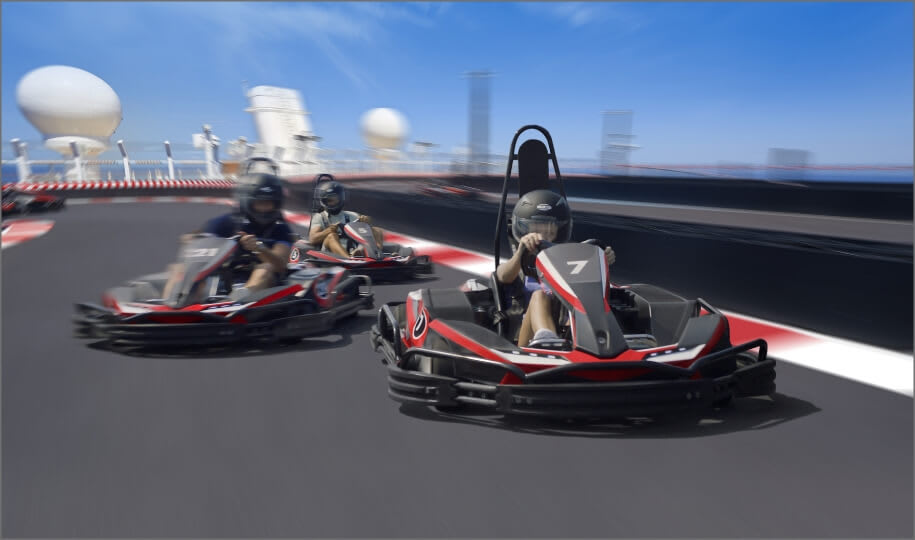 Every day is an expression of joy aboard a ship full of exhilaration and excitement. The Norwegian Joy Speedway lets you take the driving seat and whizz around a two-level racetrack surrounded by the ocean. Compete with family and friends against the stunning backdrop of the world’s coastlines. Mountains, cliffs, or beaches – it all depends on your destination.
