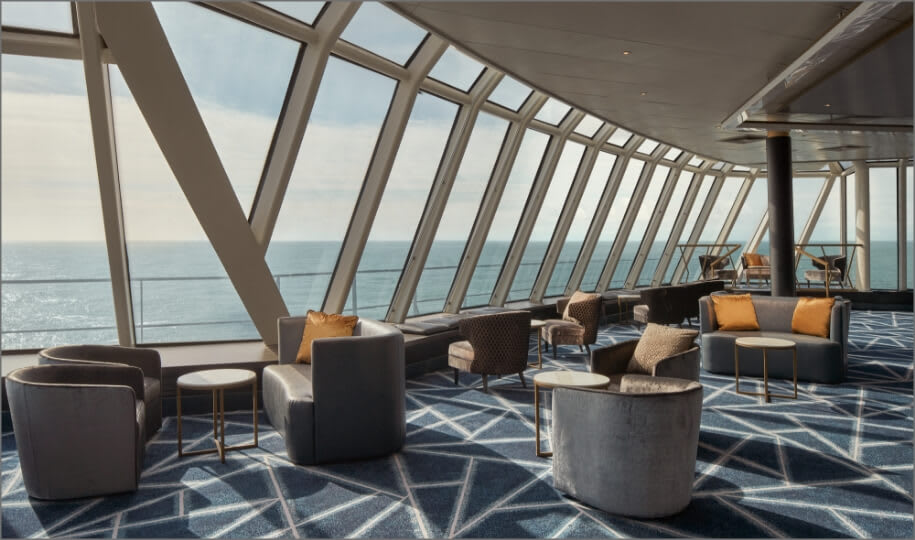 These spacious staterooms include a queen-size bed, sitting area and floor-to-ceiling glass doors that open onto a private balcony. Staterooms are priced exclusively for solo travellers.