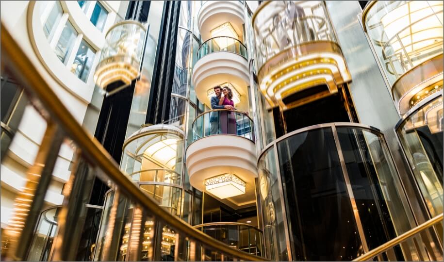 Step out onto your large, forward-facing balcony and enjoy the fresh air and magnificent views. Back inside, these Penthouses feature a queen-size bed, luxury bath with shower and bathtub, and a living and dining area. Plus concierge and butler service to fulfil all your wishes. And some can connect to an Owner’s Suite so you can sail in style with family or friends. Sleeps up to three.
