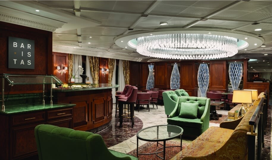Delight in all the details of suites and staterooms that combine plush furnishings, elegant amenities, and harmonious marine colour schemes.