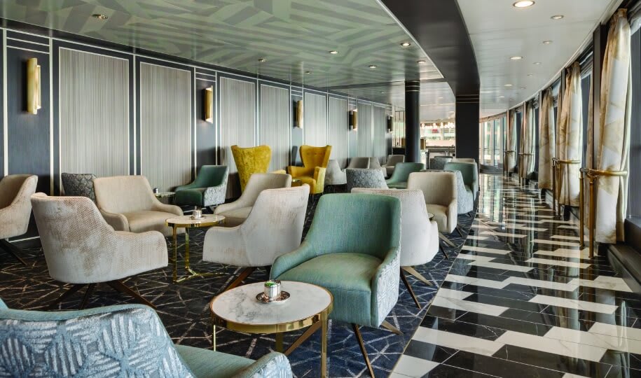 Delight in all the details of suites and staterooms that combine plush furnishings, elegant amenities, and harmonious marine colour schemes.