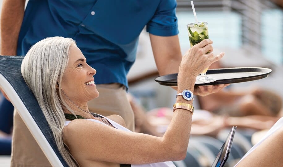 A premium stateroom category featuring our best located Mini-Suite staterooms, as well as the great amenities found in all Mini-Suites — plus premier dining benefits and luxurious perks. Each night, enjoy Club Class Dining, an exclusive dining area featuring expedited seating with no wait, expanded menu options, dedicated wait staff and table-side preparations. Other amenities include priority embarkation and disembarkation, a complimentary one-time wine set-up and so much more^