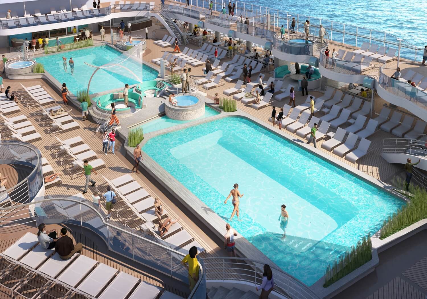 Yes, Sky Princess® has four swimming pools. These are the two top-Deck pools, as well as the Retreat Pool and Wake View Pool.