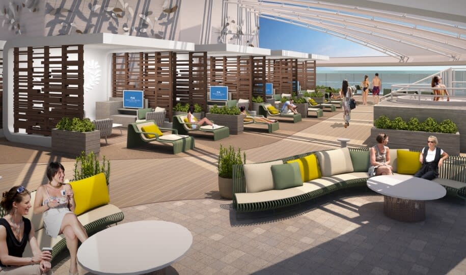 A premium stateroom category featuring our best located Mini-Suite staterooms, as well as the great amenities found in all Mini-Suites — plus premier dining benefits and luxurious perks. Each night, enjoy Club Class Dining, an exclusive dining area featuring expedited seating with no wait, additional menu options, dedicated wait staff and table-side preparations. Other amenities include priority embarkation and disembarkation, a complimentary one-time wine set-up and so much more!^Learn more about Club Class