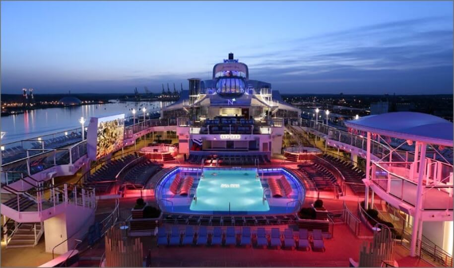 When you’re not adventuring around some of the best stop-off points in Asia, you can treat yourself to a surf lesson on the onboard surfing simulator, try your hand at fencing, experience a virtual world on the SkyPad bungee trampoline experience, or just relax in the pool, one of the wonderful whirlpools, the spa, or in the adult-only solarium.