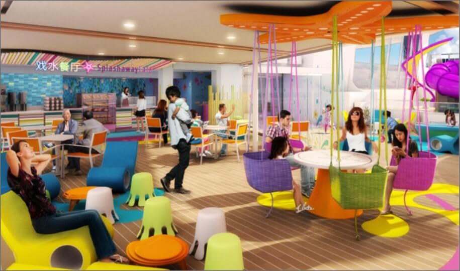 Windjammer, Main Dining Room, Noodle Bar, Splashaway Cafe, The Cafe @ Two70, Dog House and Sorrento’s Pizza, are all-inclusive of your fare.