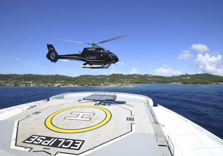 Scenic Eclipse features two helicopters onboard. Scenic Eclipse is a six-star, ultra-luxury mega yacht owned by Australian river cruise operator Scenic. It is the first ocean cruise ship for the company, which specialises in luxury river cruises.
