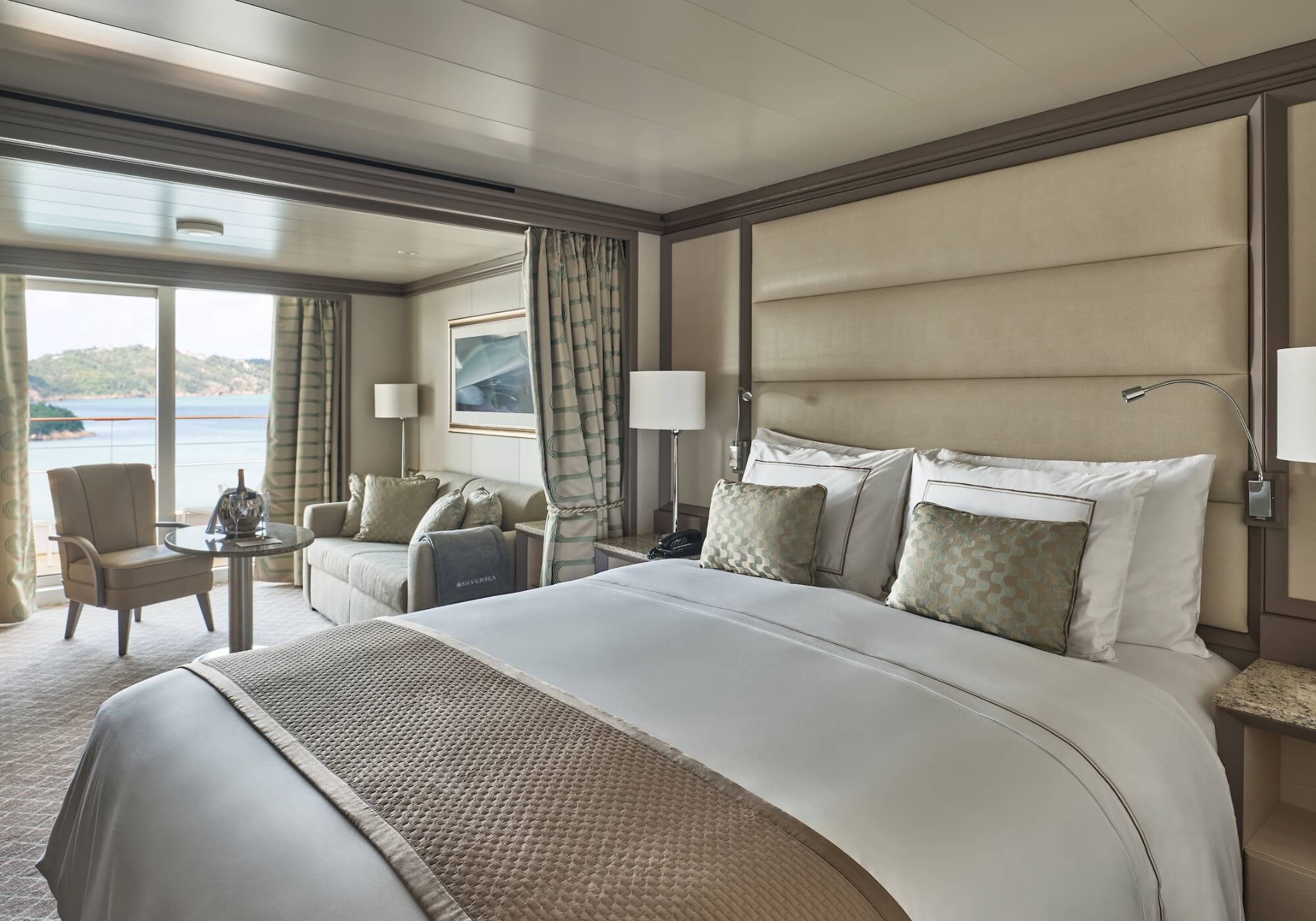 The suites on board offer one of the highest space-per-guest rations of any luxury cruise accommodation, plus cruising on an all-inclusive basis means that everything is taken care of.