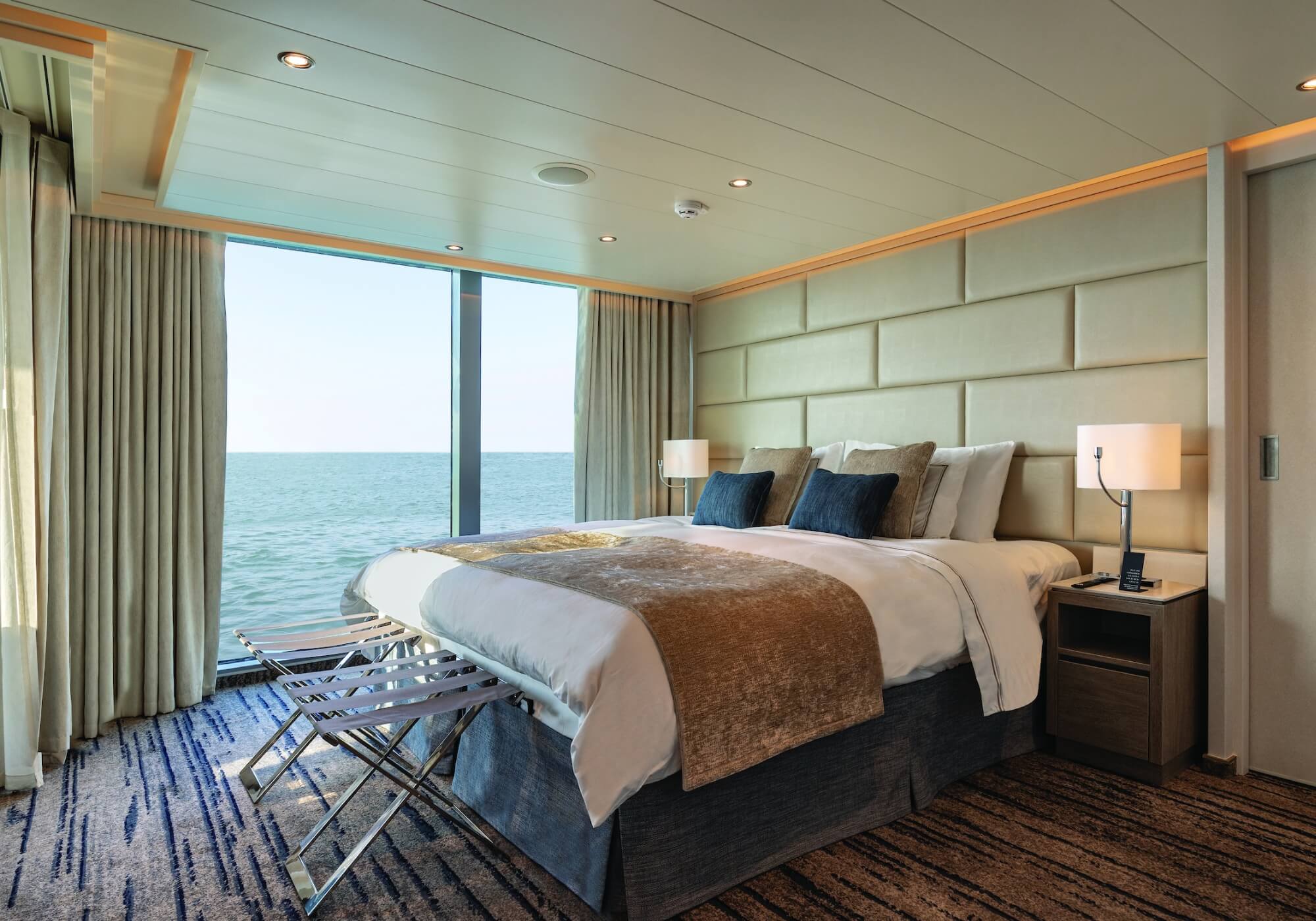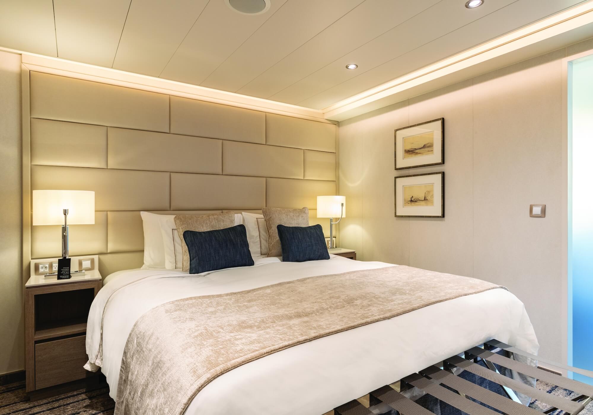 This stylish apartment suite offers the ultimate in the finest accommodation on board. A private and vast veranda, separate bedroom, a superlative level of space, comfort and service – the Owner’s Suite has it all.