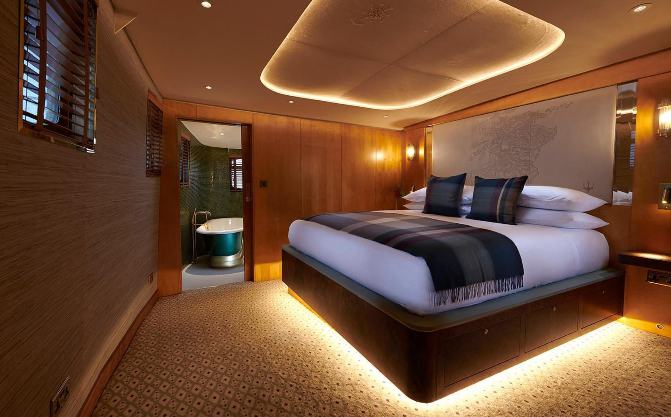 Fingal Hotel in Edinburgh is a unique floating hotel, offering luxurious accommodation aboard a beautifully restored former lighthouse tender. Moored in the historic Port of Leith, it combines maritime heritage with modern elegance. Guests can enjoy stylish cabins, fine dining, and exceptional service. Providing a tranquil retreat on the water, yet close to the city’s attractions, Fingal offers an unforgettable stay in a truly distinctive setting.