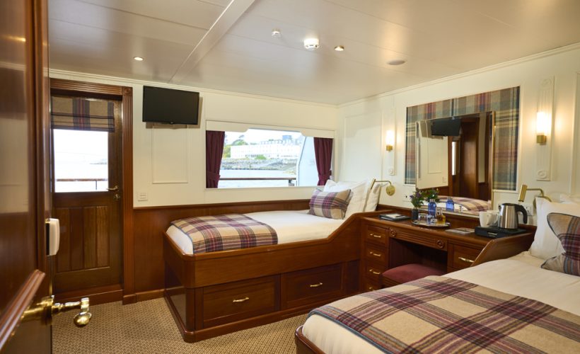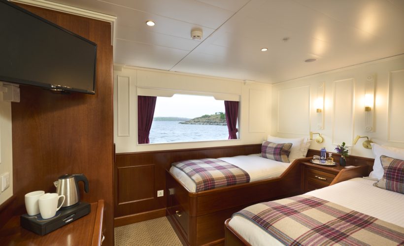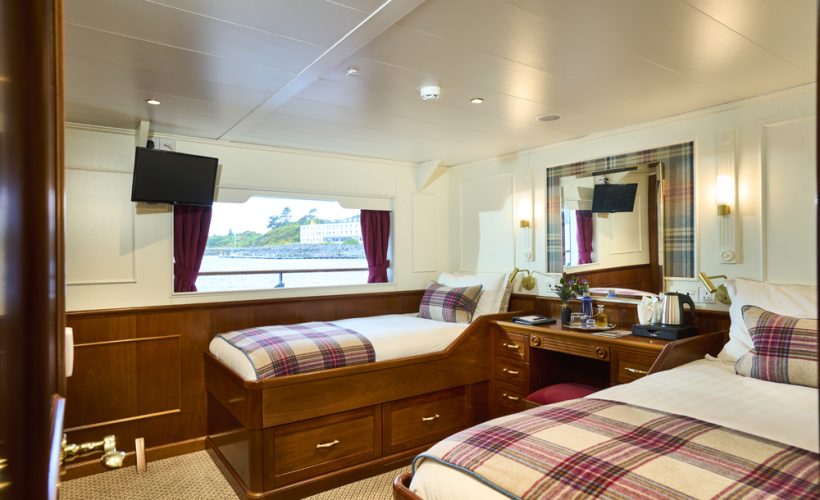 The Deluxe Cabin on the Richard Hannay Deck offers a sophisticated and spacious retreat, blending comfort with elegant design. Featuring luxurious twin beds, large windows for panoramic views, and stylish decor, this cabin ensures a relaxing environment for guests. The modern en-suite bathroom includes premium amenities, and thoughtful touches throughout the room add to the sense of tranquillity. Perfectly situated on the Richard Hannay Deck, this cabin provides both privacy and easy access to the ship’s main areas, making it a top choice for discerning travellers.