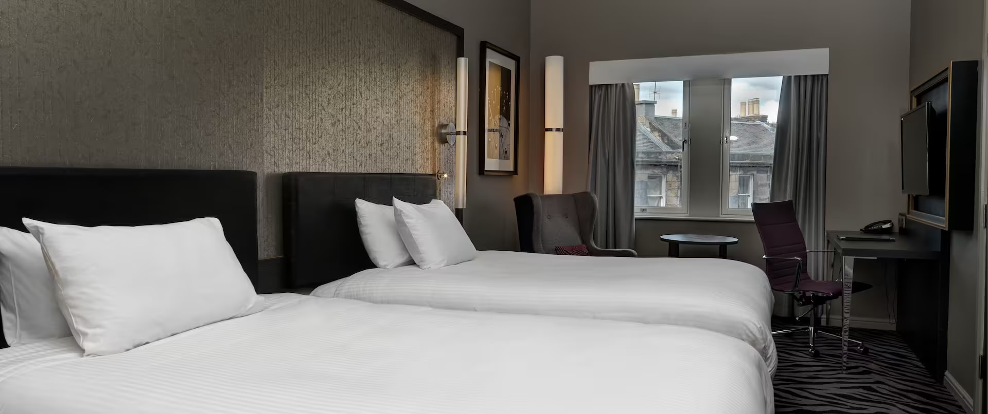 The DoubleTree by Hilton Edinburgh City Centre blends contemporary comfort with historic charm. Nestled in the heart of Scotland’s capital, it offers a prime location for exploring iconic landmarks like Edinburgh Castle and the Royal Mile. With sophisticated decor, modern amenities, and warm Scottish hospitality, the hotel provides a memorable stay. Guests are welcomed with the signature DoubleTree chocolate chip cookie, and the well-appointed rooms boast stunning views of the city. Enjoy facilities including a fitness centre, restaurant, and impeccable service.