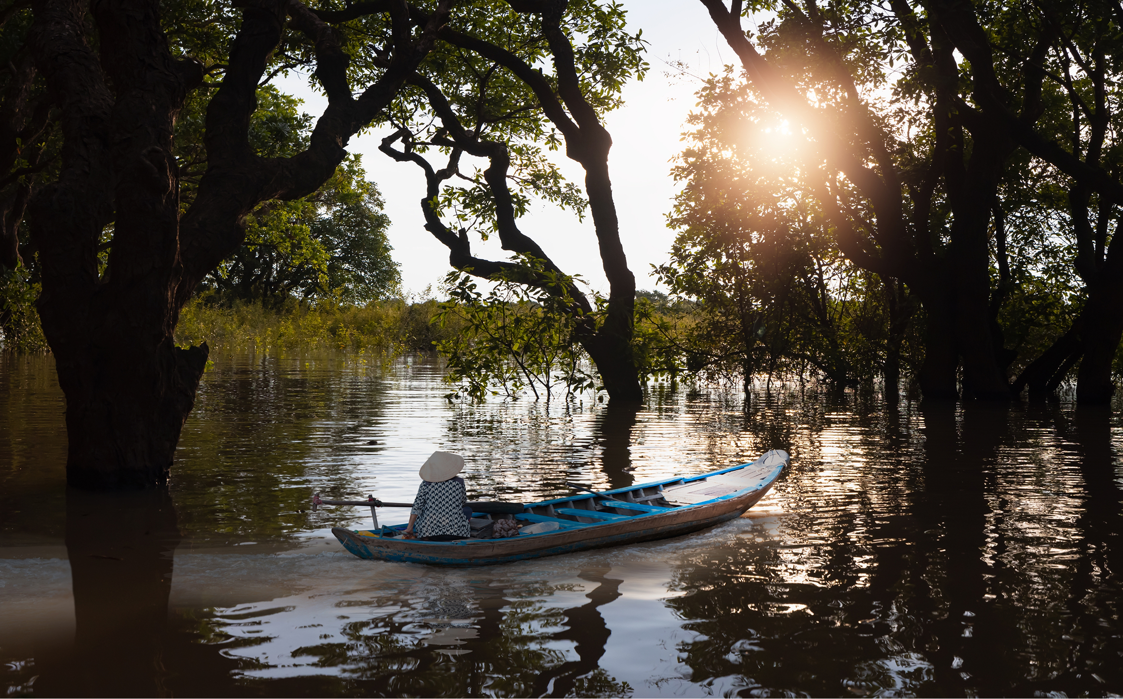 This morning, board a local boat and cruise gently across Tonlé Sap, taking in views of small floating villages along the way. Glide through winding canals toward the Great Lake, where you’ll fully appreciate its vast, tranquil beauty.