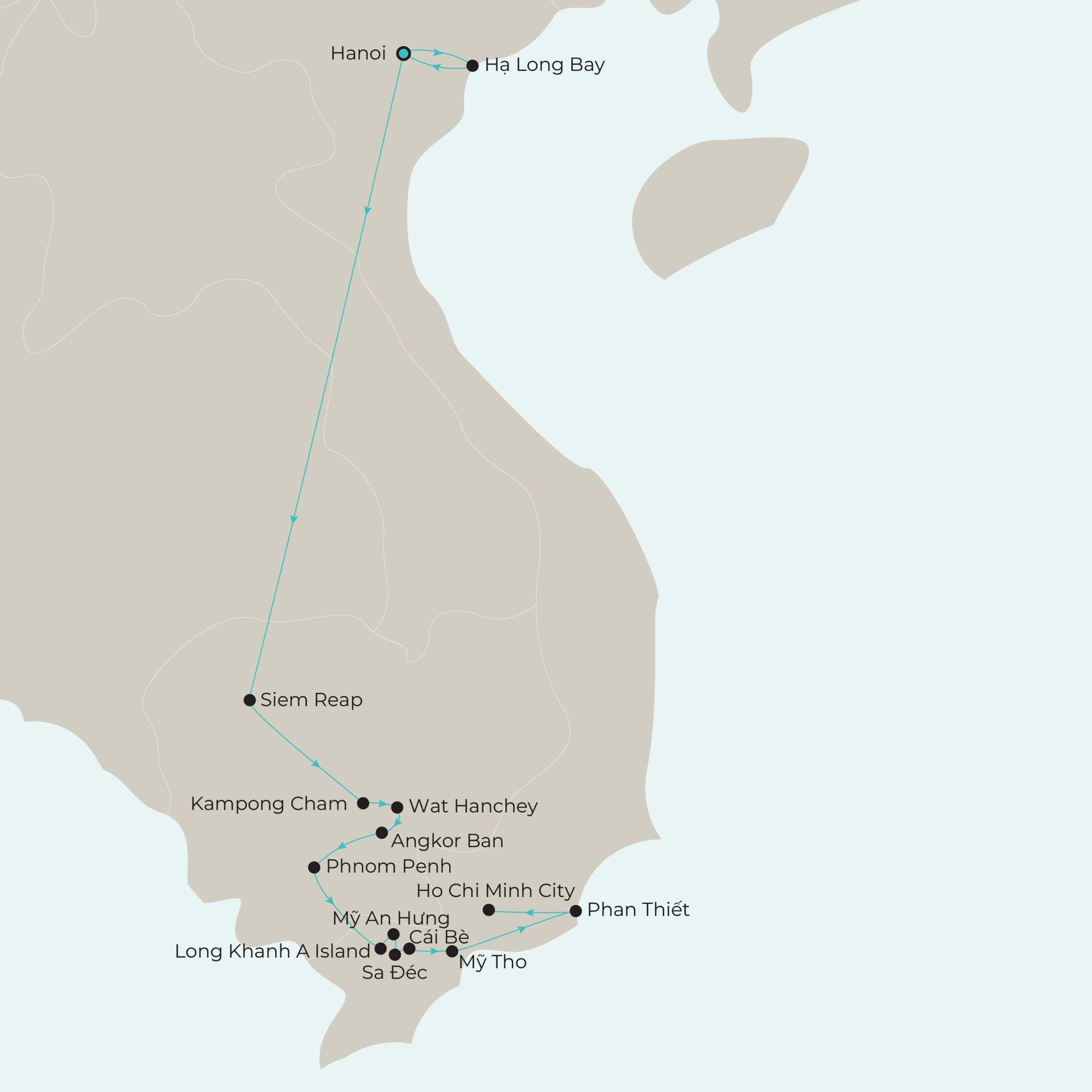 Your journey is further enhanced by immersive tours, including vibrant Hanoi and the stunning Hạ Long Bay on a traditional Junk Boat, the awe-inspiring Angkor Wat in Siem Reap, and the historic Cù Chi Tunnels. Plus, unwind with a luxury beachfront hotel stay in Phan Thiết.