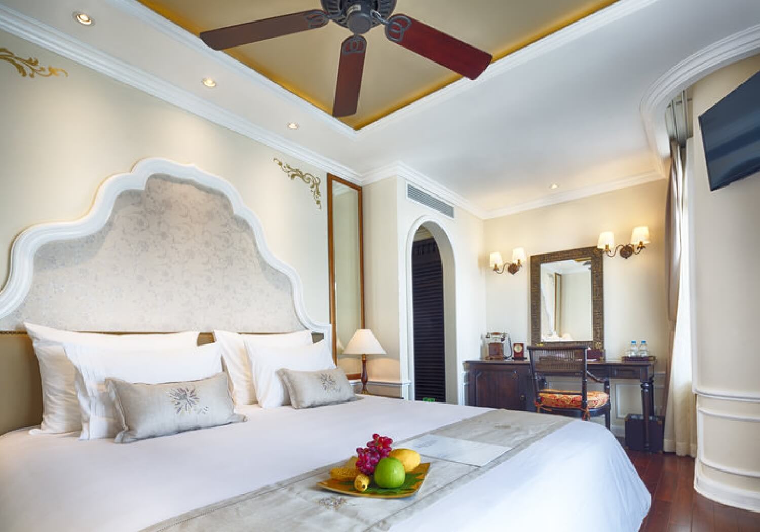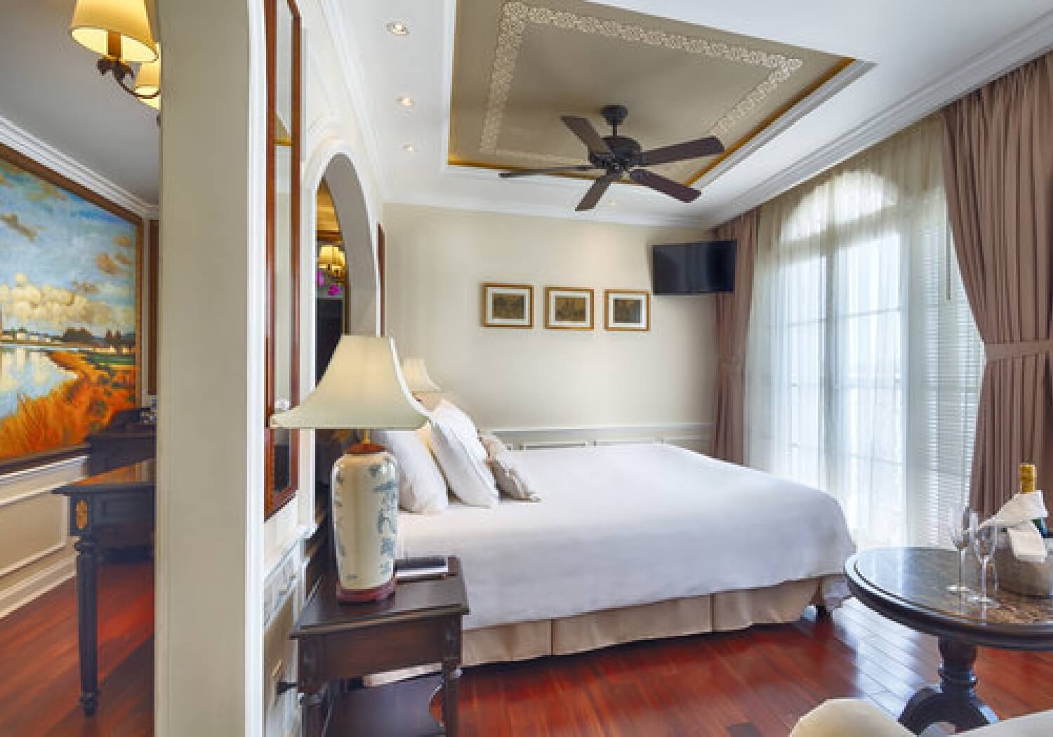 Indulge yourself in the Superior Suite after a long day exploring the wonders of Vietnam. Adorned with classic décor, such as a personal writing desk and fabulously furnished floors, these spacious and nostalgic rooms offer an array of essential modern amenities to ensure your comfort.