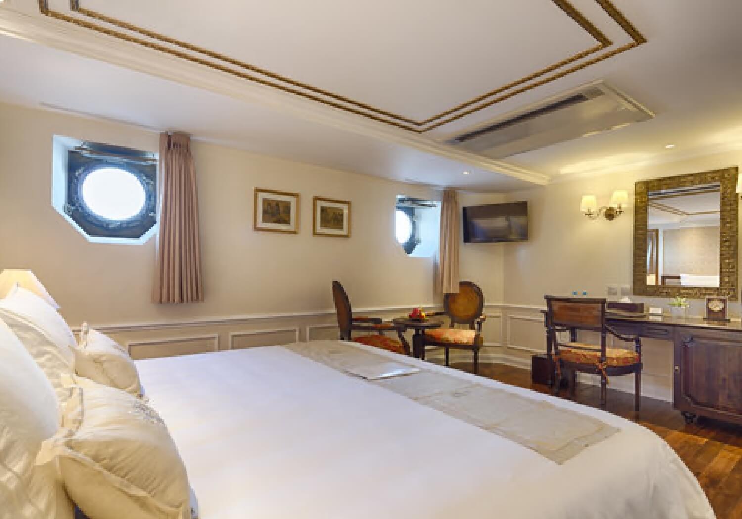 Offering guests a luxurious haven with panoramic views, furnished with two twin-size beds or one queen-sized bed as requested, the Signature Suite features an array of generous amenities to ensure maximum comfort as you sail gracefully down the tranquil Mekong River.