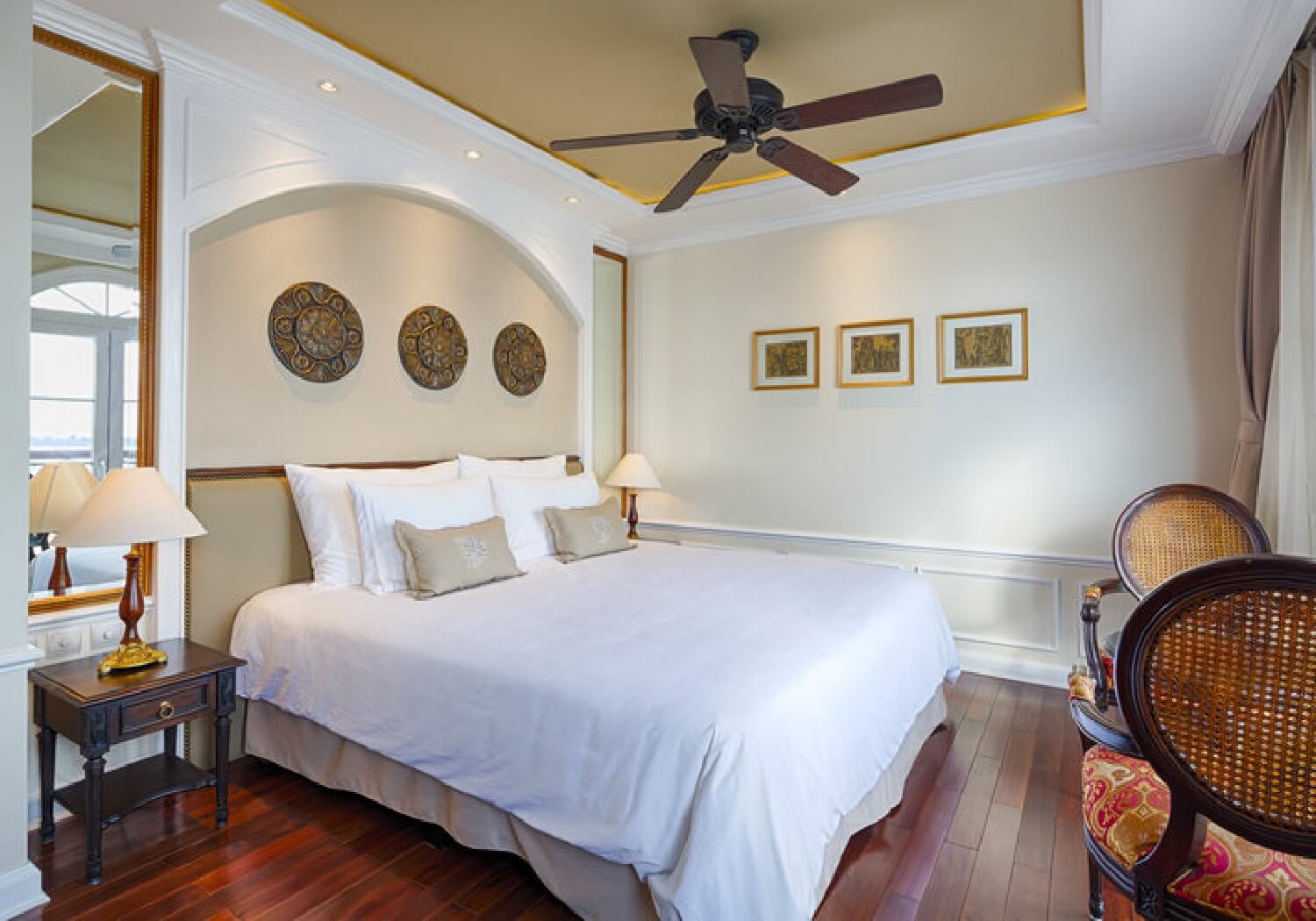 The Mekong Navigator offers all the charm and sophistication of a bygone era, enhanced by luxurious modern amenities in her extravagant suites. Presenting an outstanding selection of spacious and indulgent rooms with meticulous attention to every modern detail and comfort for you to retire to after an adventure-filled day.