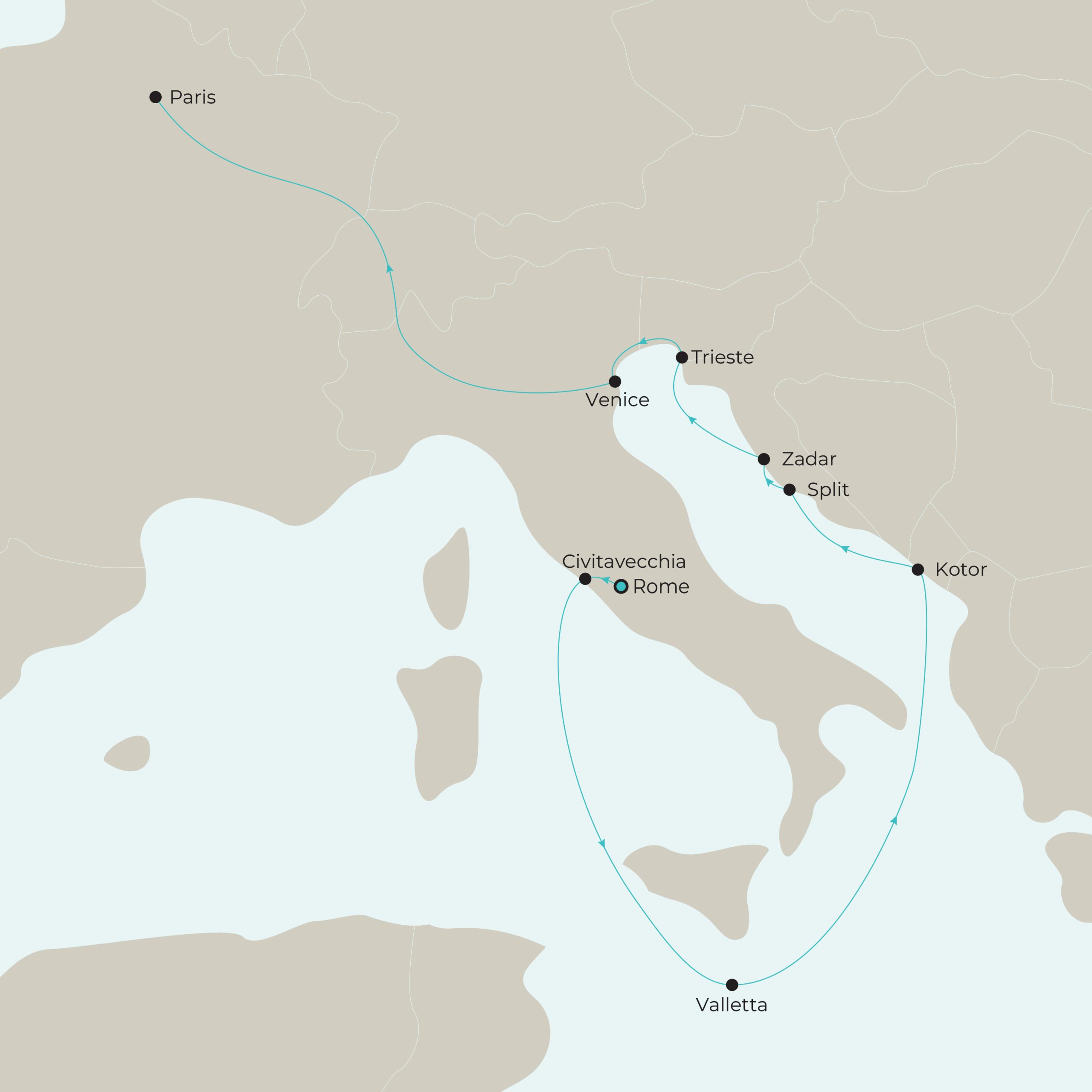 Your adventure is beautifully paired with a magical Eastern Mediterranean cruise aboard Cunard’s Queen Elizabeth. Revel in white-gloved service, refined décor, and an ambiance of classic luxury as you sail crystal-clear waters, discovering the cultural treasures of Valletta, Kotor, Split, and Zadar.