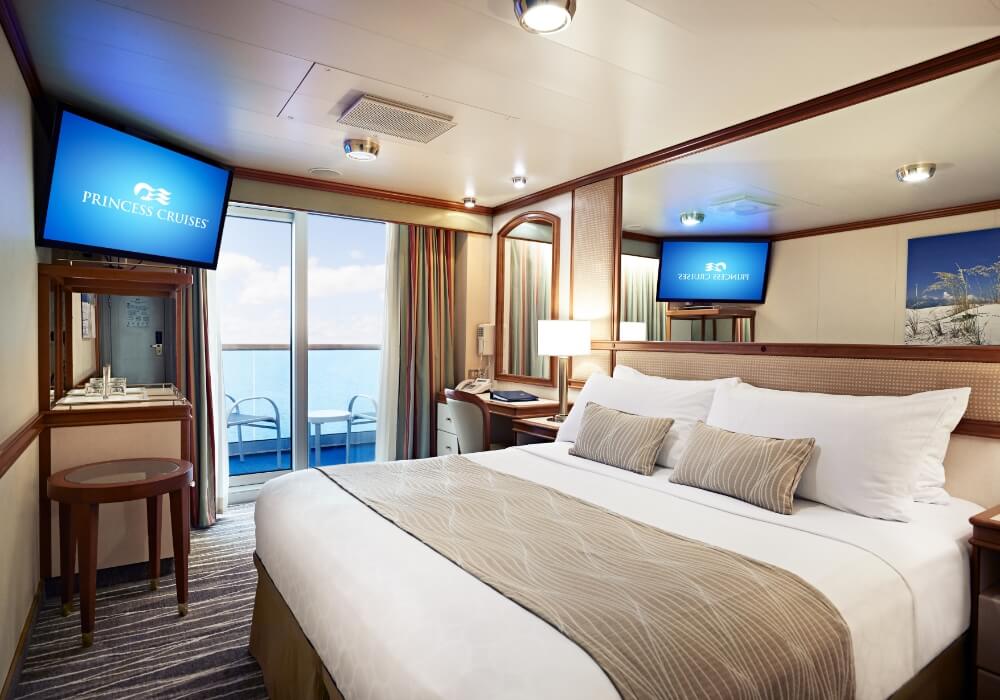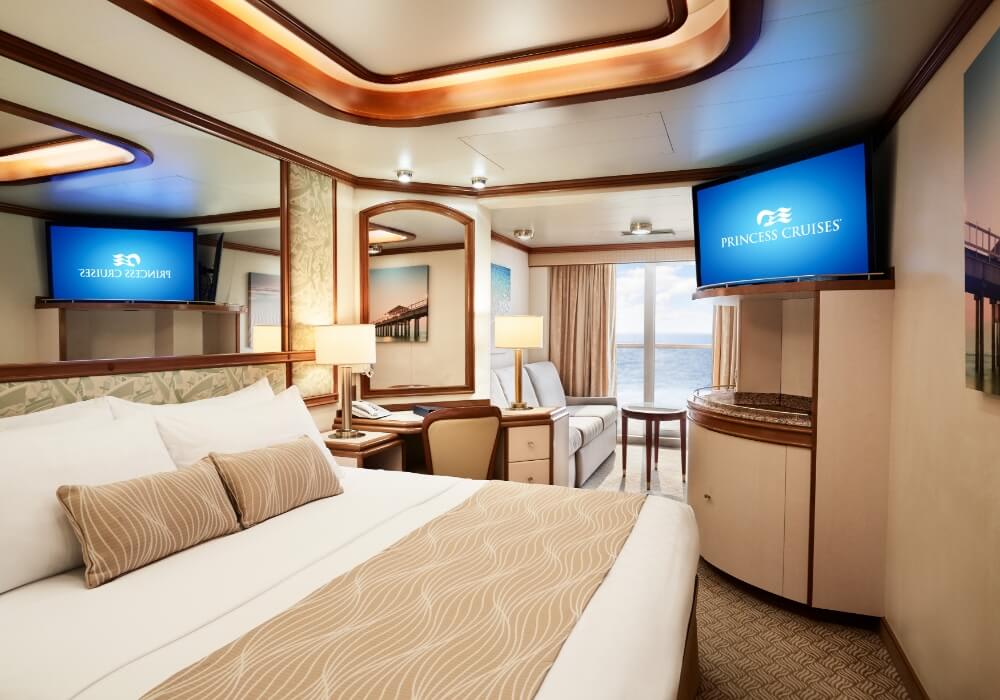 These staterooms are the perfect place to sit back and unwind. As Princess Cruises®’ most affordable option, it features two twin beds or a queen-size bed, as well as a TV, closet, and bathroom with shower.