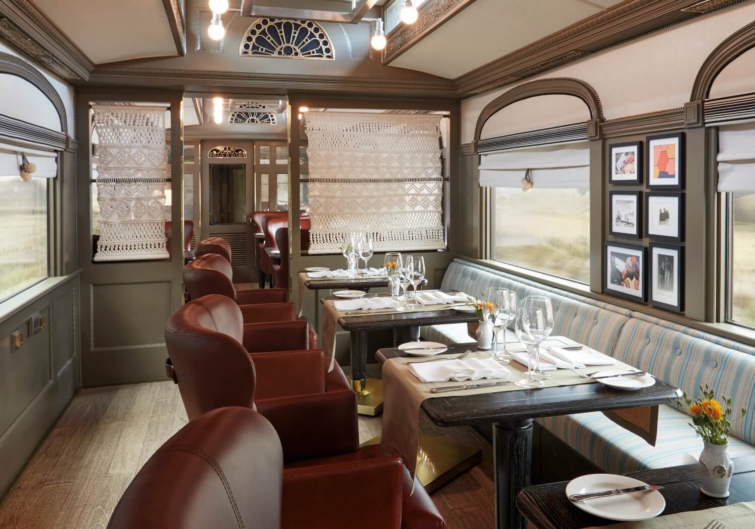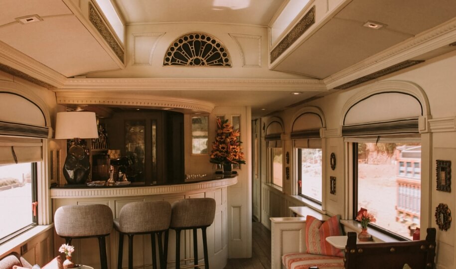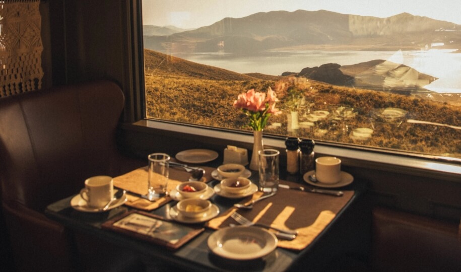 A great place to spend time with fellow passengers is in the Lounge Car. Named after the Maca root, it sports an elegant grand piano and entices guests in with the promise of live music and an occasional sing-along. Savour a delicious, blended cocktail, relax on comfortable grey tweed sofas and swap stories with friends old and new.