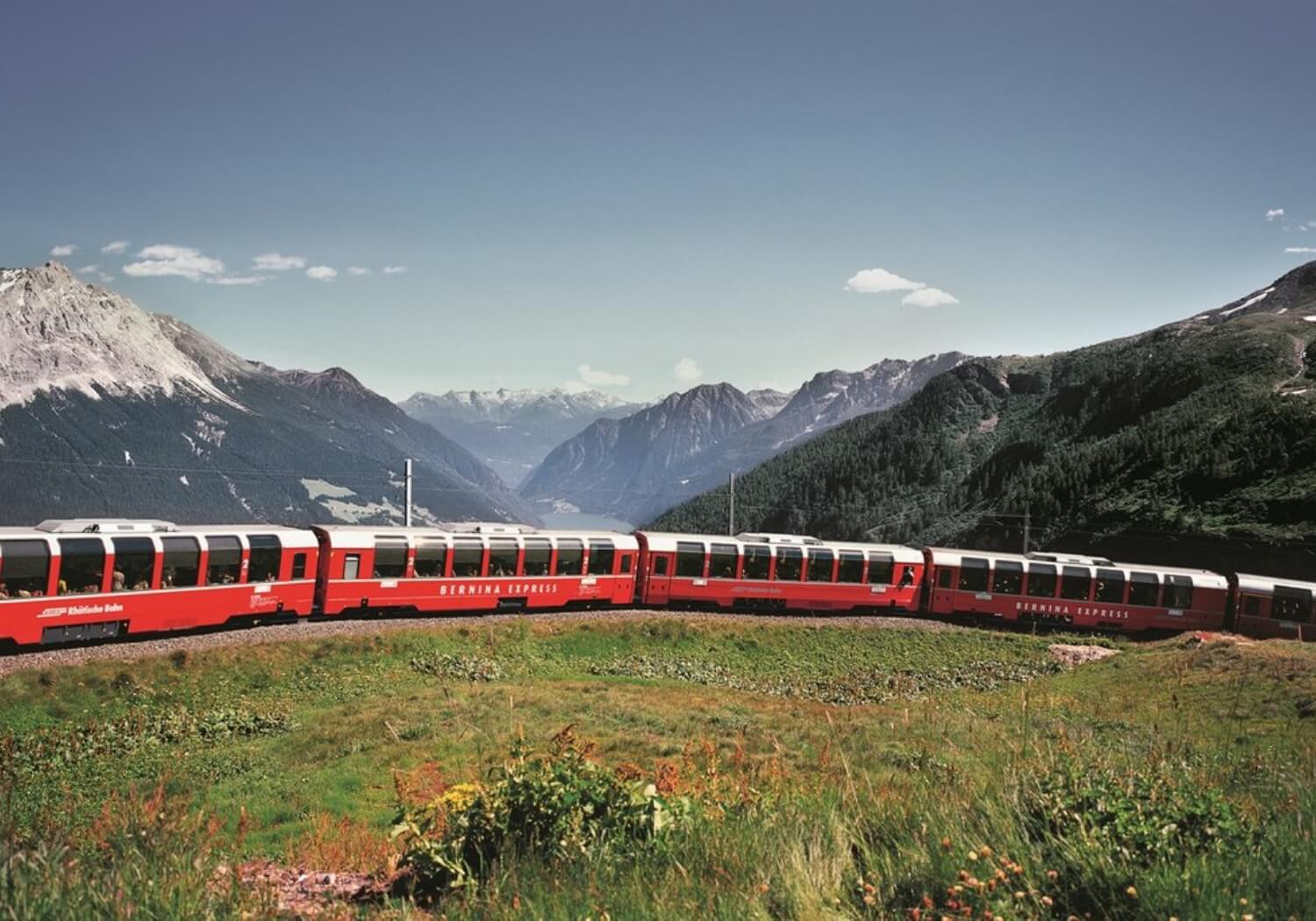 Not only does it bring together the alpine charm of St. Moritz and the green pastures of Chur, it also links the different languages and cultures of Switzerland, one of Europe’s most visually spectacular countries, and Italy, the land of La Dolce Vita. The train ascends one of the highest railways in the mountains, amid shimmering glaciers, before descending to the palm-fringed lakeshores of Italy.